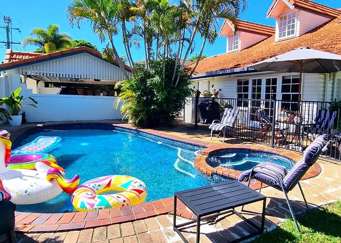 Located only a 5-minute walk from the Queensland Korean War Memorial, Fab 4Brm Home With Pool A 18 Min Walk To Beach Gold Coast offers a terrace with a view over the garden. Pampering guests with a Jacuzzi, this 3-bedroom villa features views of the pool and is nestled 2.5 km from City of Gold Coast Council.